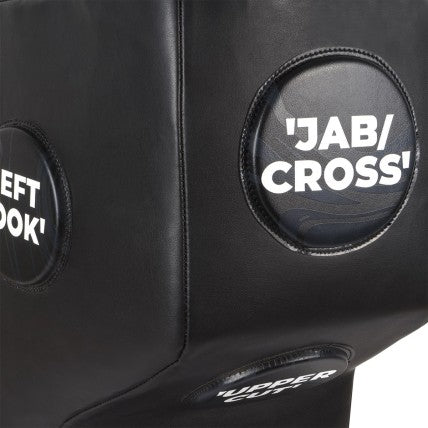 Obiettivi di Colpo: La sagoma presenta 6 obiettivi di colpo elevati per praticare i diversi colpi del pugilato. Identificati con il loro nome, stimolano la corretta esecuzione delle combinazioni e la coordinazione uditiva-visiva.