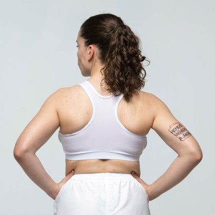 Protezione e Sicurezza: Le coppe di protezione semirigide incluse, realizzate in polietilene, proteggono il seno dagli impatti. Le coppe si estendono fino alle costole superiori per incrementare l'area protetta e la sua stabilità.